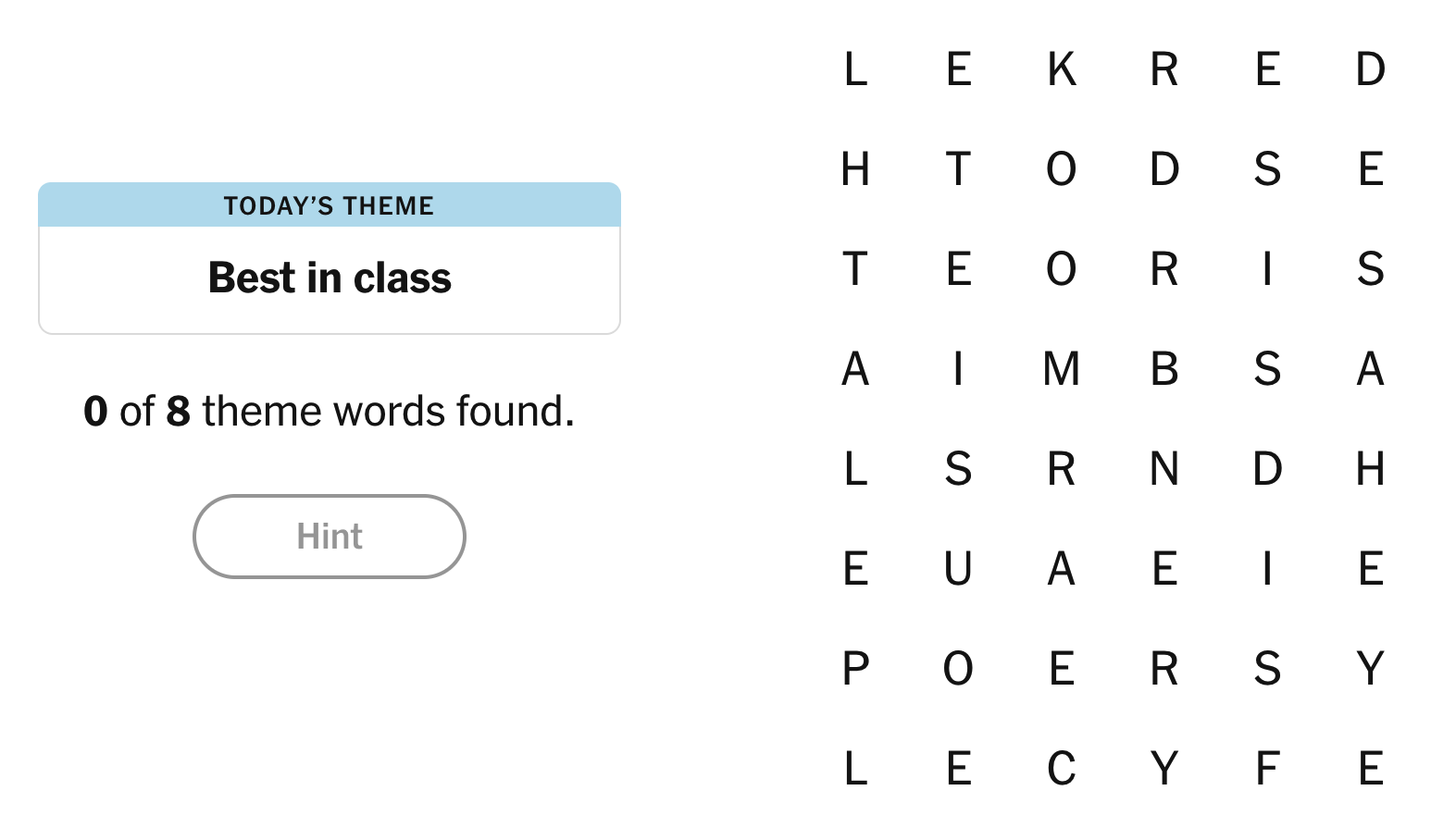 When you find yourself stuck on the puzzle, feel free to enter any non-theme terms consisting of at least four letters to earn partial credit towards a hint. Once you've submitted three such non-themed words, the "Hint" option becomes available. Should you decide to activate this feature, some letters within one of the themed answers will light up. However, your task remains: arrange those illuminated letters correctly to complete a theme-related term. In case hints are already present but unsolved when seeking additional help, the sequence needed for that particular answer will become visible instead.